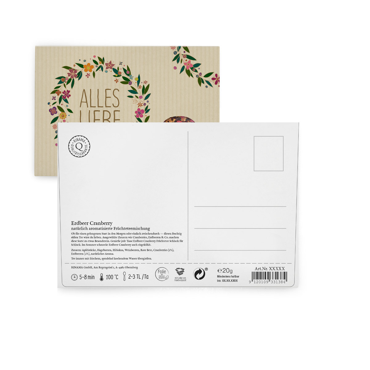 Alles Liebe - Grußkarte - Blumenkranz Früchtetee