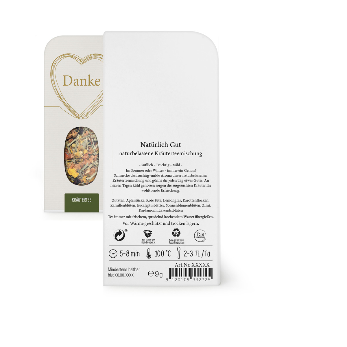 Danke goldenes Herz Genusskarte Kräutertee