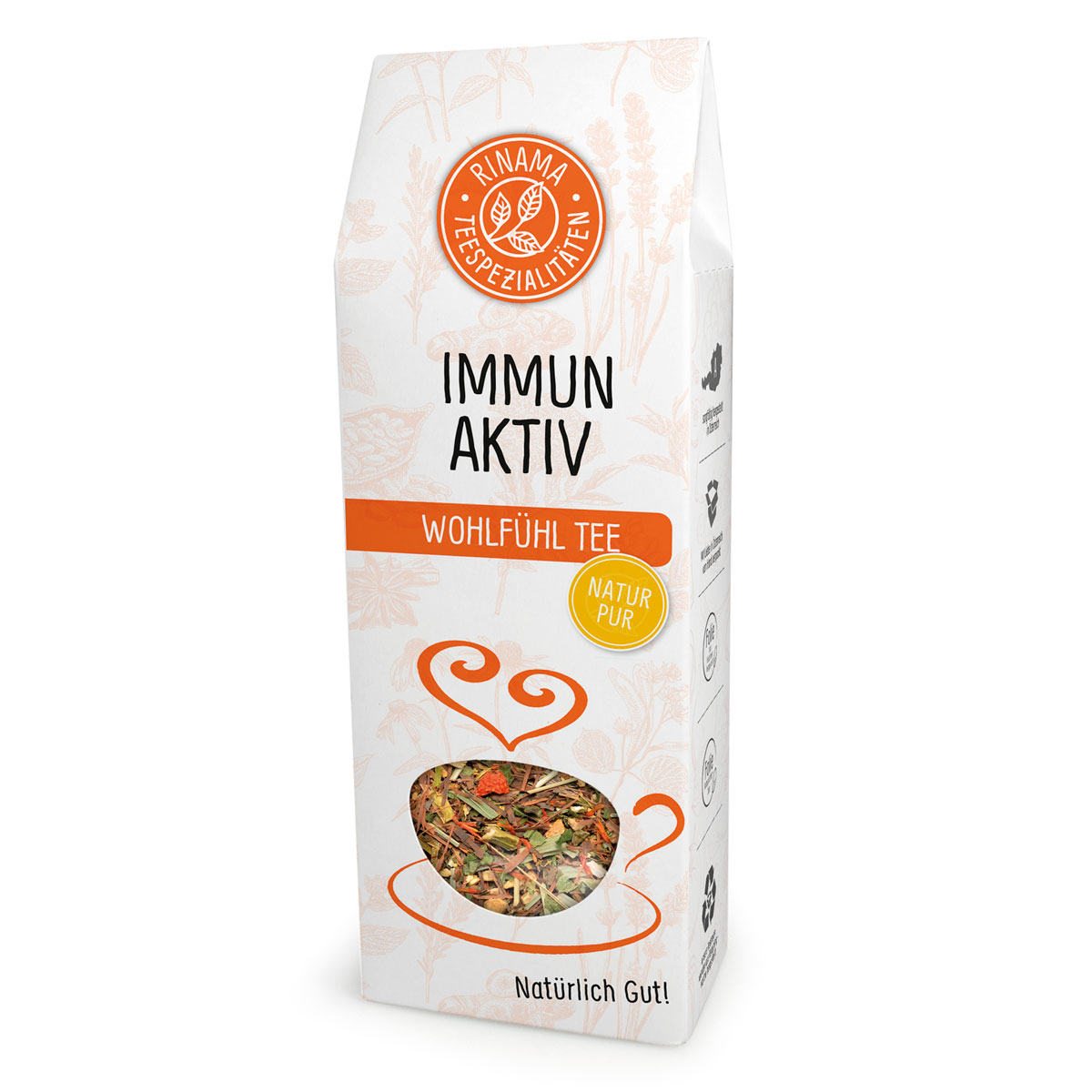 Mach dein Immunsystem fit! Immun aktiv unterstützt dich dabei, gesund und munter zu bleiben. Gönne dir eine erholsame Tee-Auszeit und tanke mit diesem Wohlfühltee frische Energie. Durch das enthaltene Vitamin C aus Hagebutte und Ingwer werden die Abwehrkräfte auf natürliche Weise gestärkt. Ein fruchtiger Tee — nicht nur für die kalte Jahreszeit.