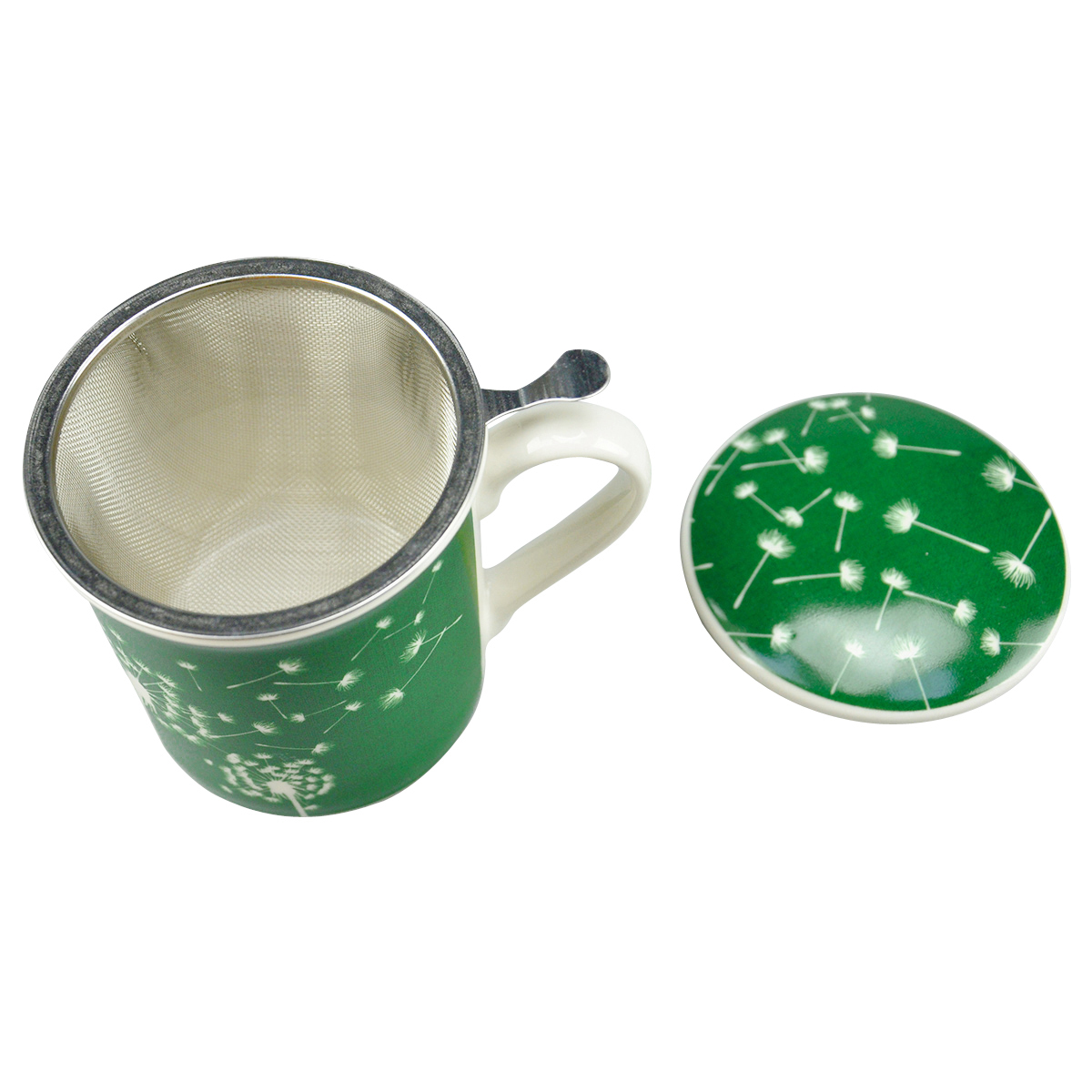 Kräuterteetasse m. Metallsieb & Deckel in Schmuckkarton Design Pusteblumen