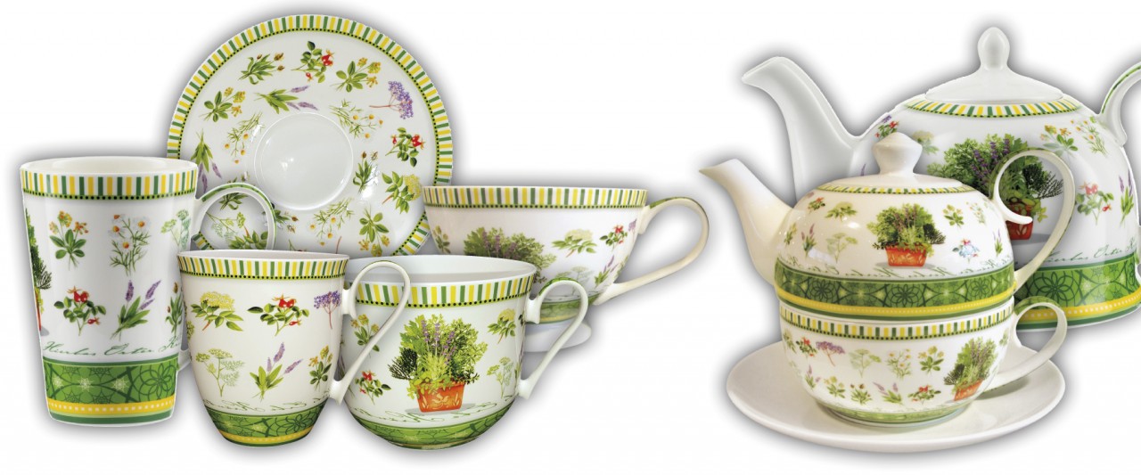 Becher 0,3 l Brillantporzellan -Iglu- Dekor Teeblätter und Teekannen