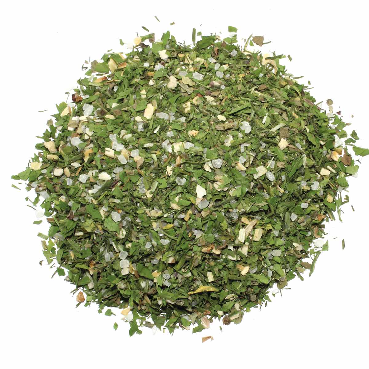 Zutaten: Meersalz (60%), Knoblauch, Petersilie, Dillspitzen, Schnittlauch, Zwiebel, Basilikum