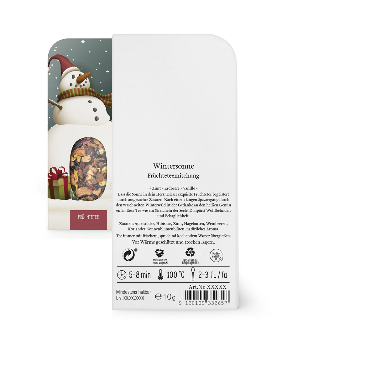 Lass die Sonne in dein Herz! Dieser exquisite Früchtetee begeistert durch ausgesuchte Zutaten. Nach einem Spaziergang durch den verschneiten Winterwald ist der Gedanke an den heißen Genuss einer Tasse Tee wie ein Streicheln der Seele.