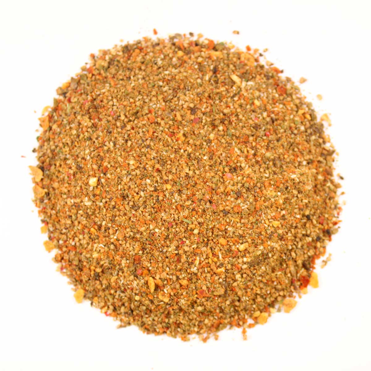 Zutaten: Pfeffermischung (Pfeffer schwarz, Pfeffer weiß, Pfeffer grün, Schinusbeere Pfeffer rosa) (55%), Piment, Paprikaflocken rot, Chiliflocken, Jalapeno grün, Petersilie, Kümmel
