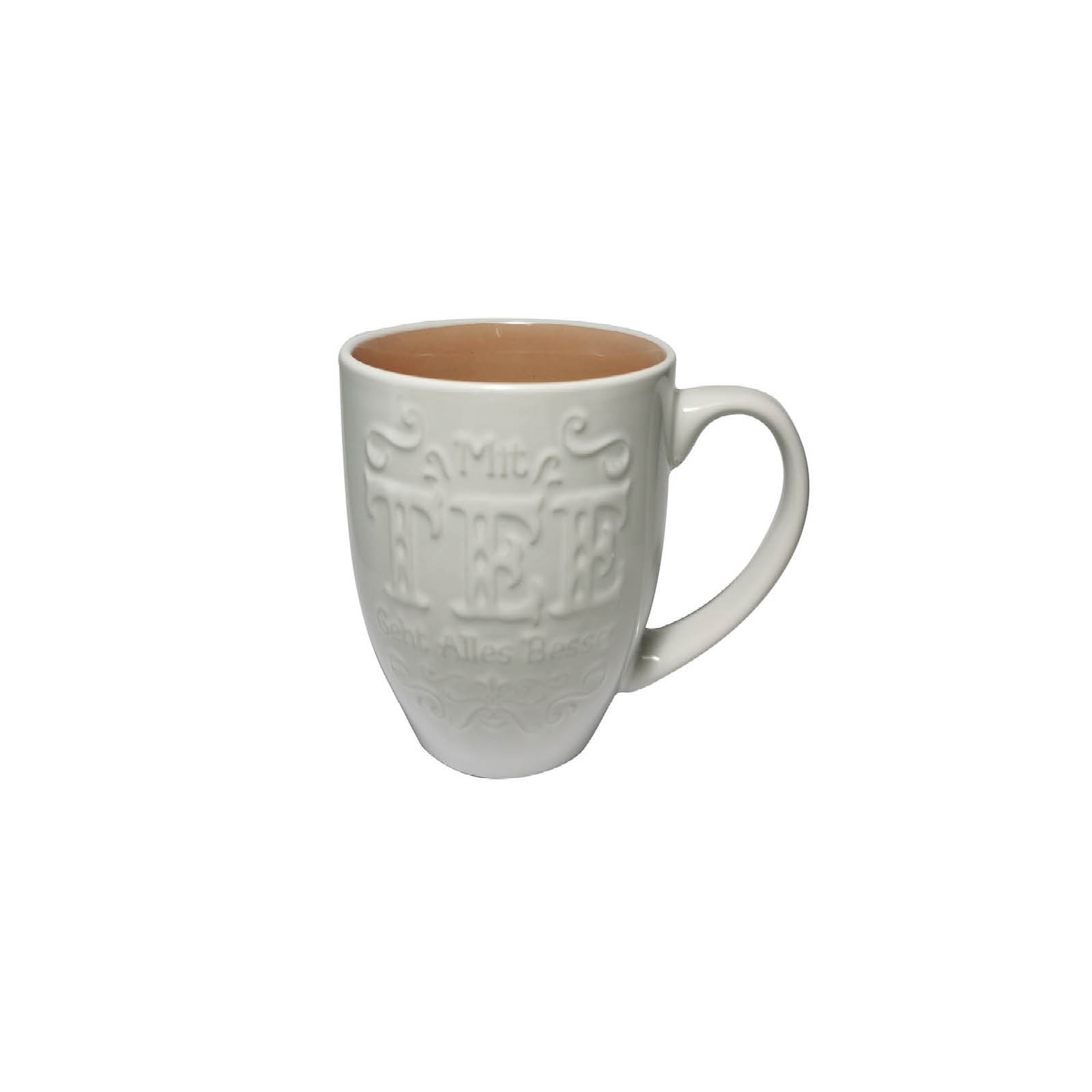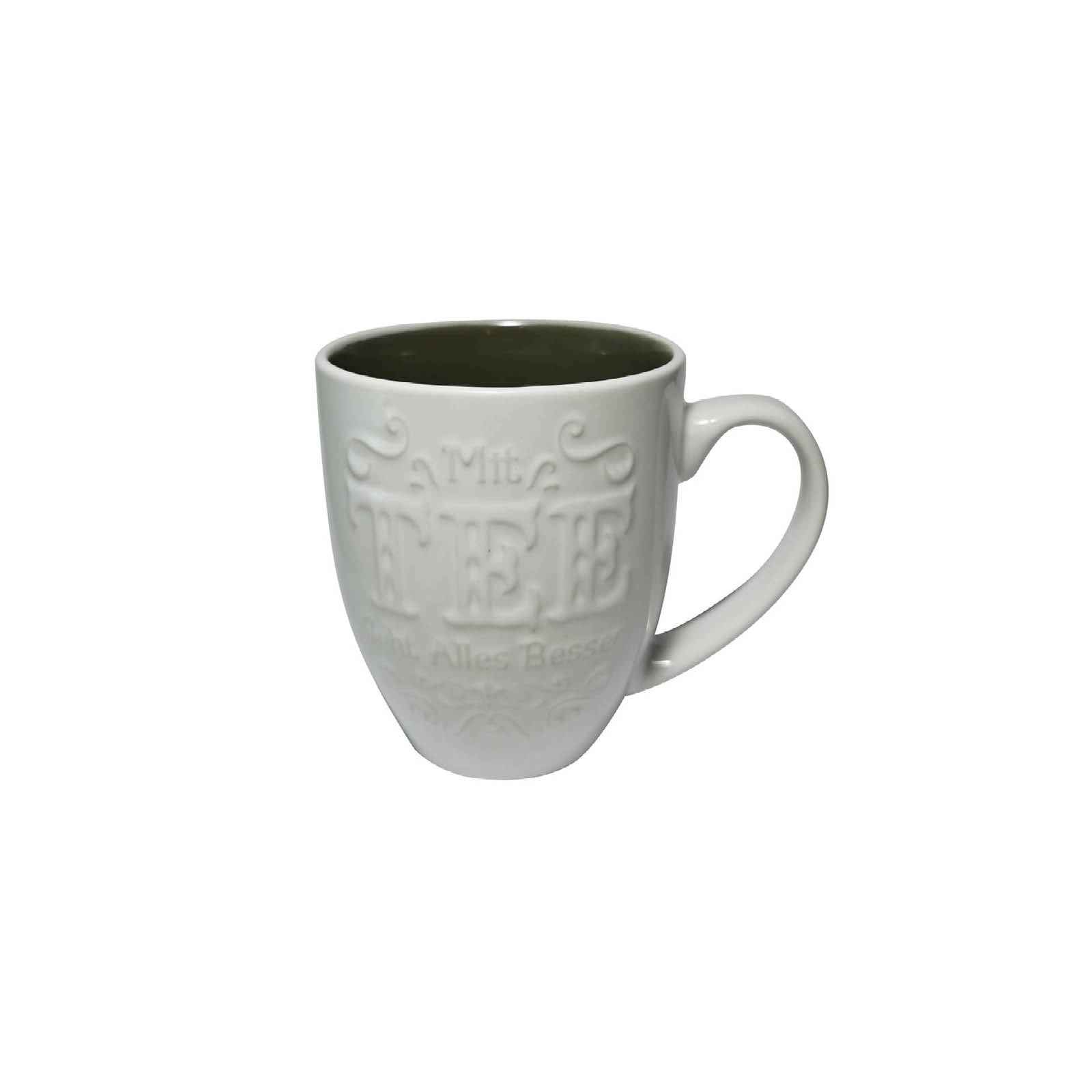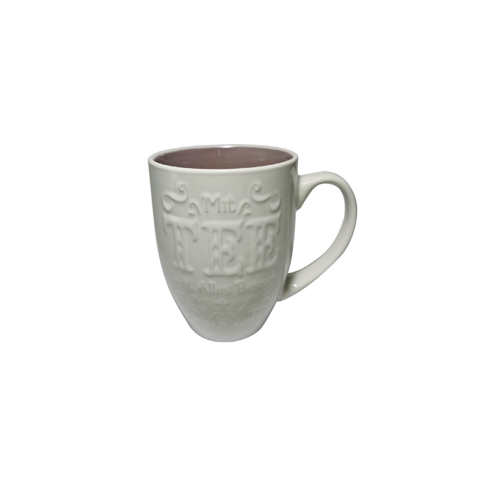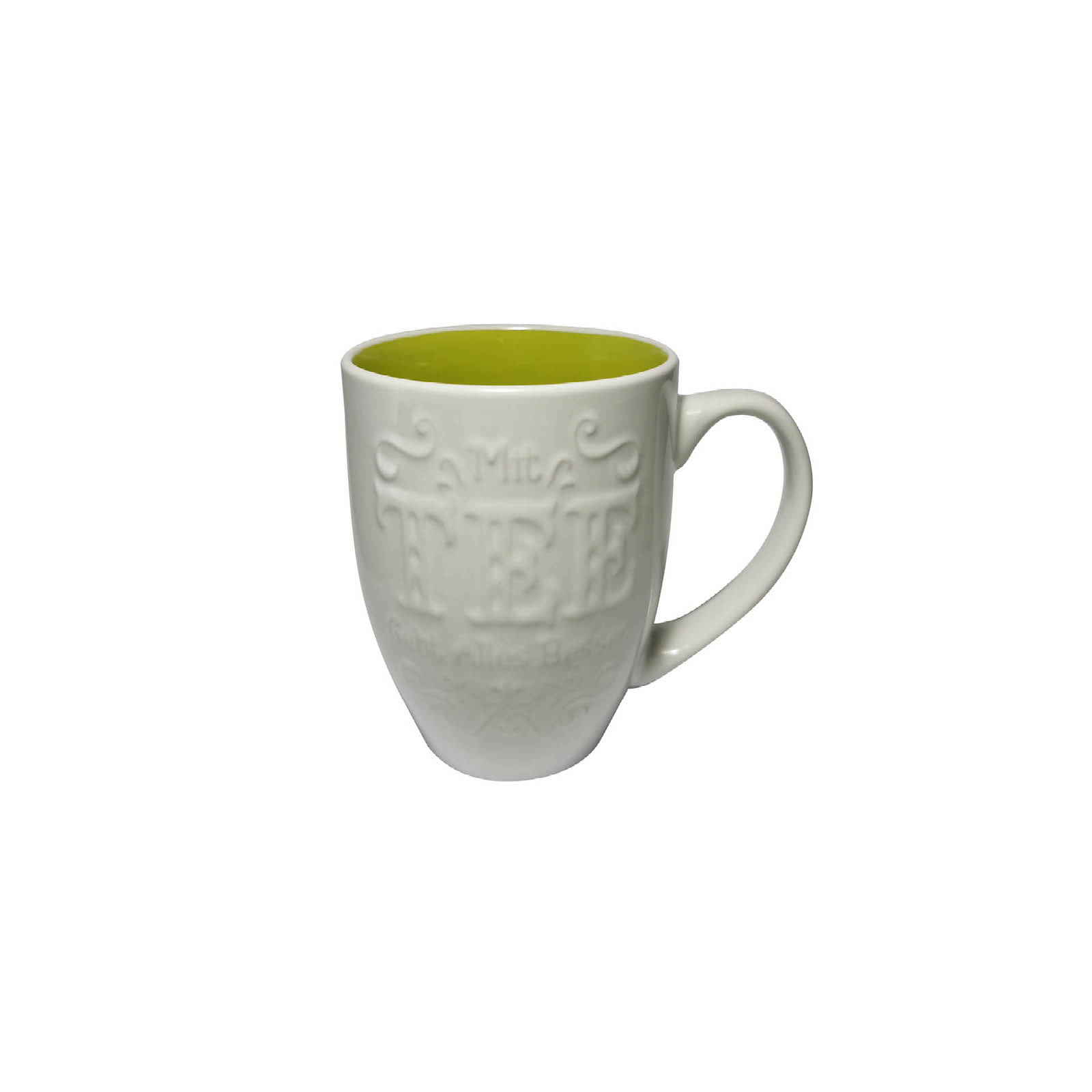 Steingut Becher 470ml handdekoriert 4 Farben sortiert "Mit TEE geht alles besser"