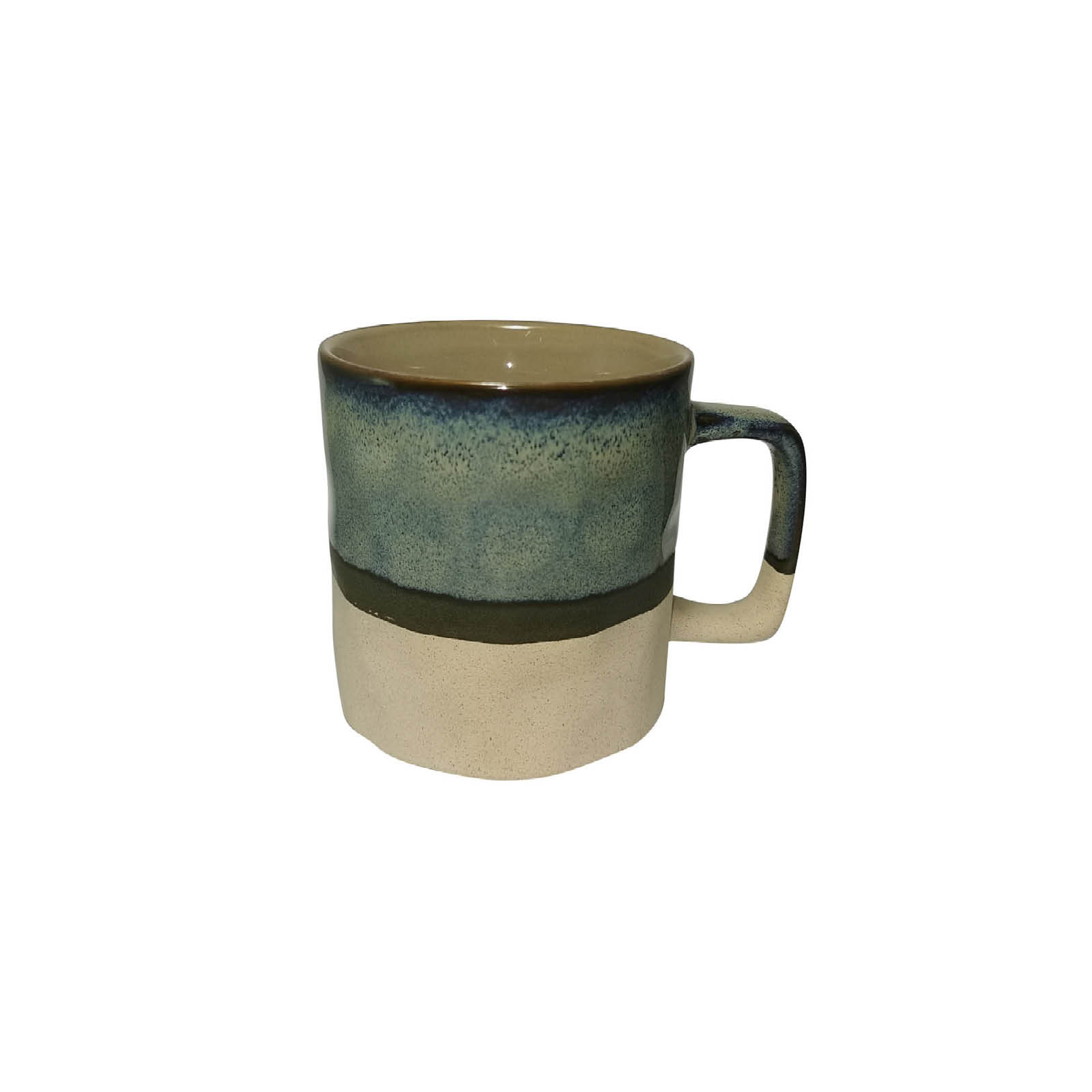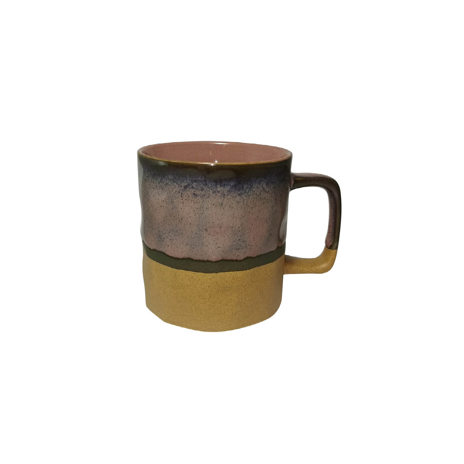 Steingut Becher gerade 500ml handdekoriert 4 Farben sortiert "gestreift "