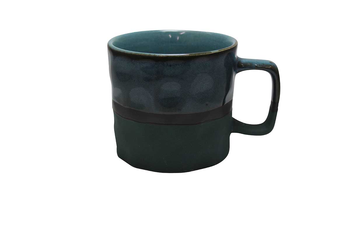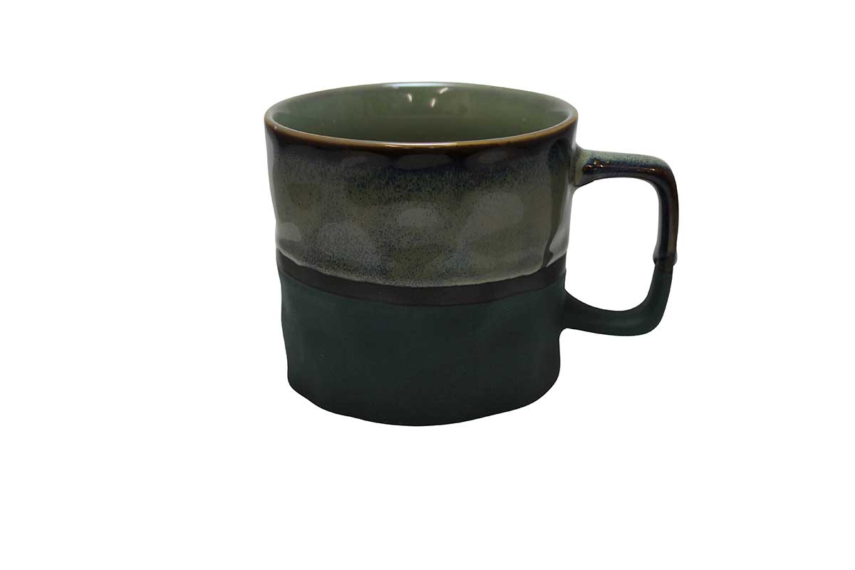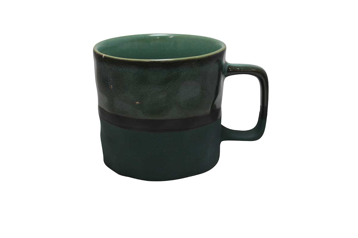 Steingut Becher gerade 500ml handdekoriert 4 Farben sortiert "shades of green "