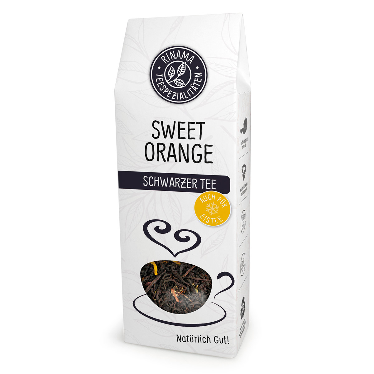 Zutaten: Schwarztee Ceylon (91%), Orangenschalen (5%), Ringelblumenblüten, Aroma, natürliches Aroma