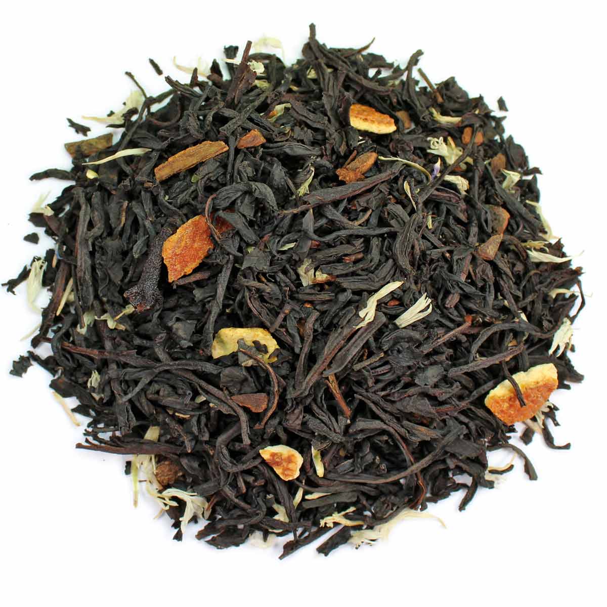 Zutaten: Schwarztee Ceylon (84%), Zimt, Orangenschalen, Gewürznelken, Kornblumen weiß, Aroma
